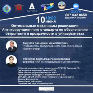 10.06.2020 г. Карагандинский индустриальный университет совместно с Республиканским проектным офисом «SANALY URPAQ» и НИИ «Антикоррупционные технологии» провел вебинар-тренинг.|10.06.2020 G. KARAGANDA INDUSTRIAL UNIVERSITY TOGETHER WITH THE REPUBLICAN PROJECT OFFICE «SANALY URPAQ» AND THE RESEARCH INSTITUTE «ANTI-CORRUPTION TECHNOLOGIES» HELD A WEBINAR TRAINING.|10.06.2020ж. Қарағанды индустриялық университеті Республикалық «SANALY URPAQ» кеңселік жобасымен және «Сыбайлас жемқорлыққа қарсы технологиялар» ҒЗИ -мен бірлескен вебинар-тренинг өткізді.