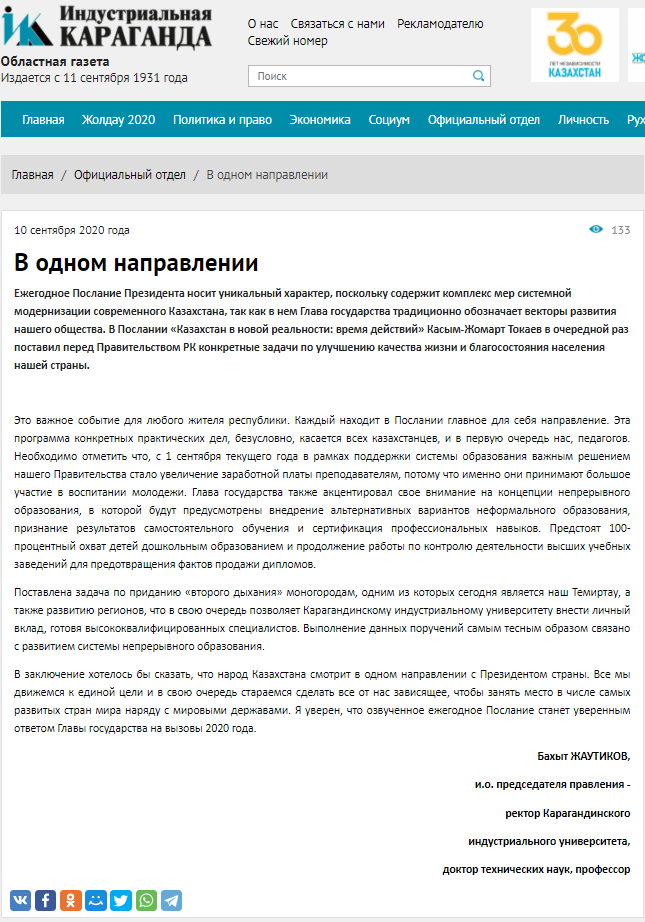 О вопросах развития науки|ON DEVELOPMENT ISSUES OF SCIENCE|Ғылым саласын дамыту мәселелері туралы