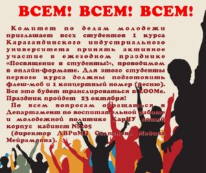 Уважаемые студенты Карагандинского индустриального университета! Приглашаем вас принять активное участие в Социальном студенческом ваучере.|DEAR STUDENTS OF THE KARAGANDA INDUSTRIAL UNIVERSITY! WE INVITE YOU TO PARTICIPATE ACTIVELY IN THE SOCIAL STUDENT VOUCHER. |ҚҰРМЕТТІ ҚАРАҒАНДЫ ИНДУСТРИЯЛЫҚ УНИВЕРСИТЕТІНІҢ СТУДЕНТТЕРІ! СІЗДЕРДІ СТУДЕНТТЕРДІҢ ӘЛЕУМЕТТІК ВАУЧЕРІНЕ БЕЛСЕНДІ ҚАТЫСУҒА ШАҚЫРАМЫЗ!