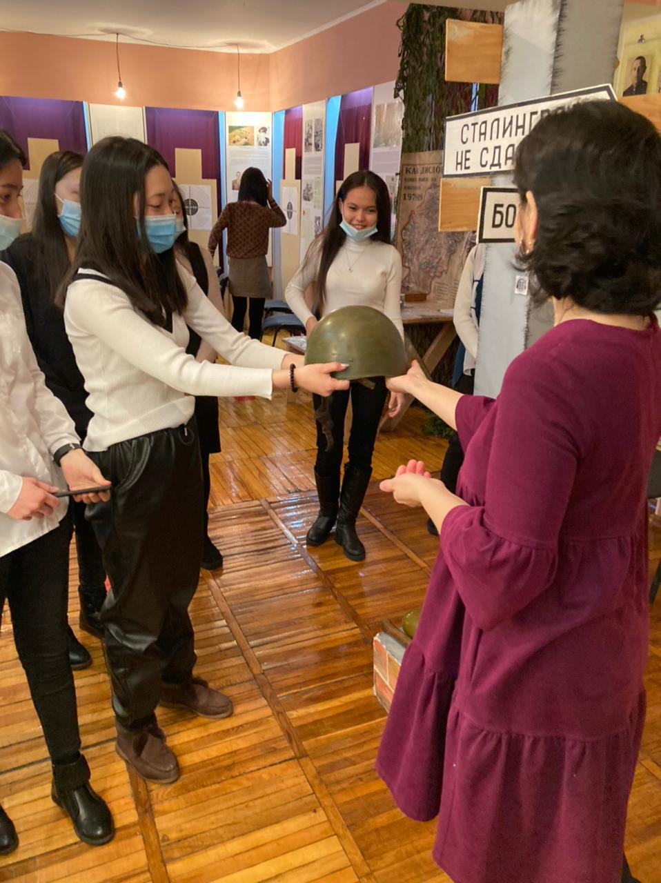 Мероприятие ценно тем, что были использованы экспонаты на трех языках. Студентам был представлен познавательный видеоматериал, подробно рассказано о трагедии тех времен.