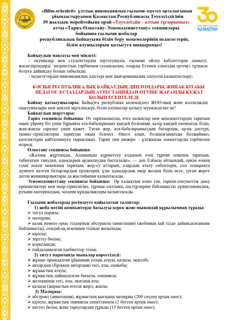 «ТМД-НЫҢ ҮЗДІК ПЕДАГОГЫ-2021» АТТЫ ХАЛЫҚАРАЛЫҚ БАЙҚАУДЫҢ АҚПАРАТТЫҚ ХАТЫ