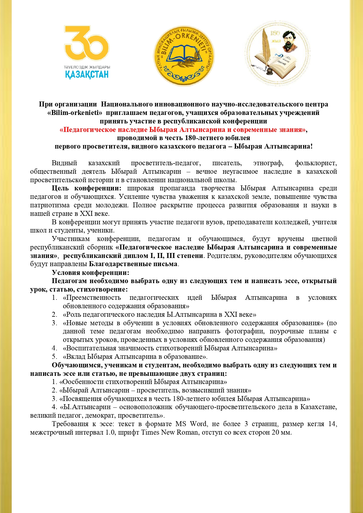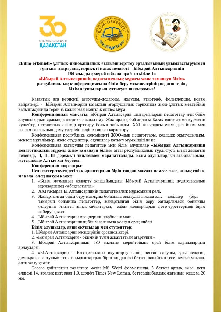 «Ыбырай Алтынсариннің педагогикалық мұрасы және заманауи білім» [ru] [/ru] [en] [/en] [kk] [/kk] Просмотров: 1 681
