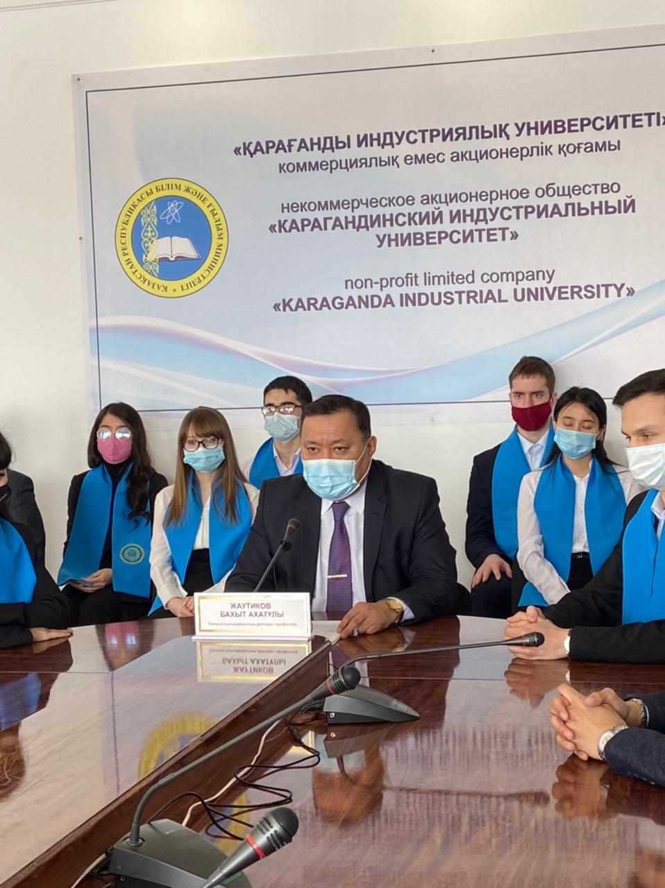 Біздің университет ұжымының атынан ректор Жаутиков Бахыт Ахатұлы кездесу қатысушыларға құттықтау сөз сөйледі. Өз сөзінде ол Қарағанды индустриялық университетінің ҚР Тұңғыш Президенті Кітапханасымен ынтымақтастығының маңыздылығы атап өтті.