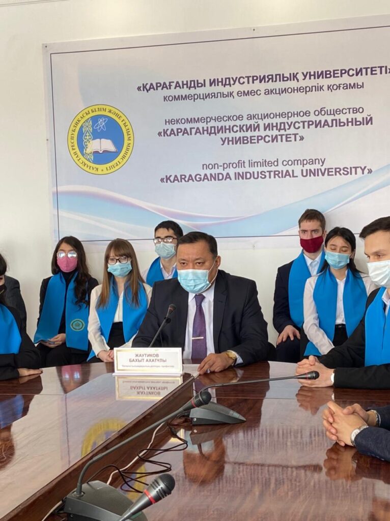 On behalf of the staff of our university, Rector Zhautikov Bakhyt Akhatovich greeted the participants of the meeting. In his speech, he noted the importance and significance of cooperation between the Karaganda Industrial University and the Library of the First President of the Republic of Kazakhstan. Every year for five years, our successful and active students are regular participants in the unique social and educational project «Ideas that change the world», implemented by the library of the First President.