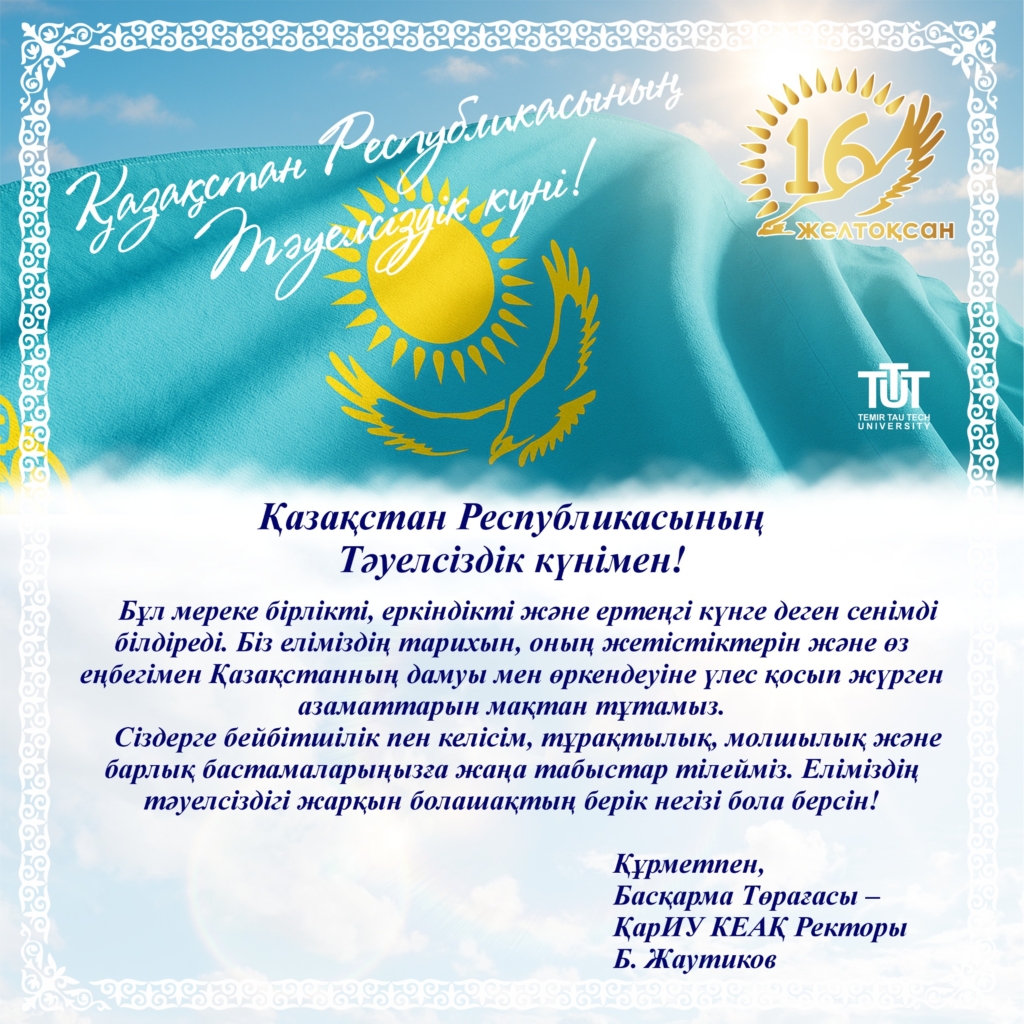 ҚАЗАҚСТАН РЕСПУБЛИКАСЫНЫҢ ТӘУЕЛСІЗДІК КҮНІМЕН!