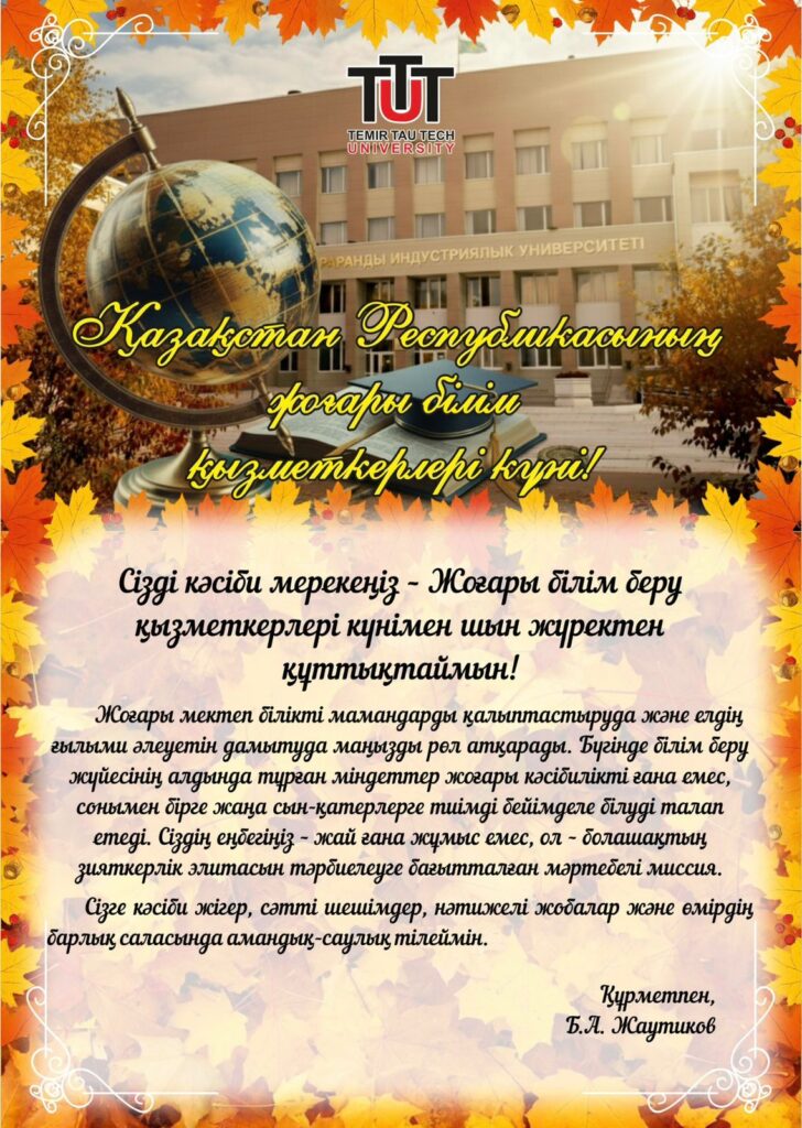 DAY OF HIGHER EDUCATION WORKERS OF THE REPUBLIC OF KAZAKHSTAN!