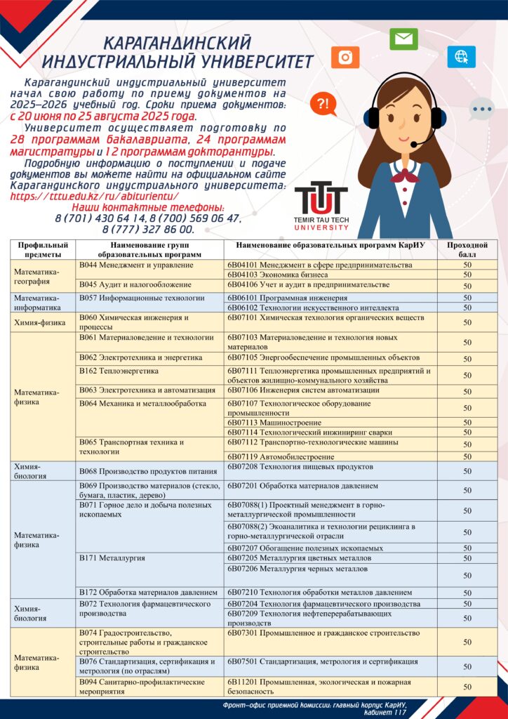 Подробную информацию о поступлении и подаче документов вы можете найти на официальном сайте Карагандинского индустриального университета: